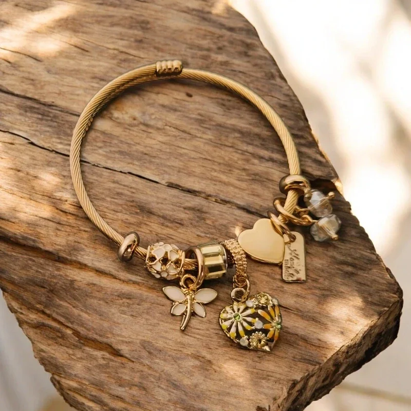 Luxe bedelarmband zacht geel