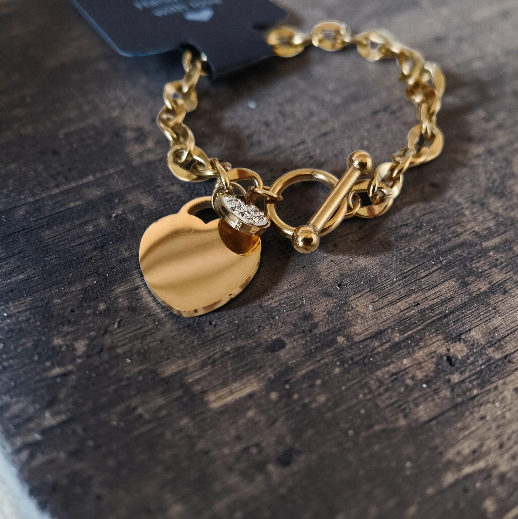 Het kleine hartje is ingelegd met zirkoontjes, waardoor het armbandje een subtiele glans krijgt.