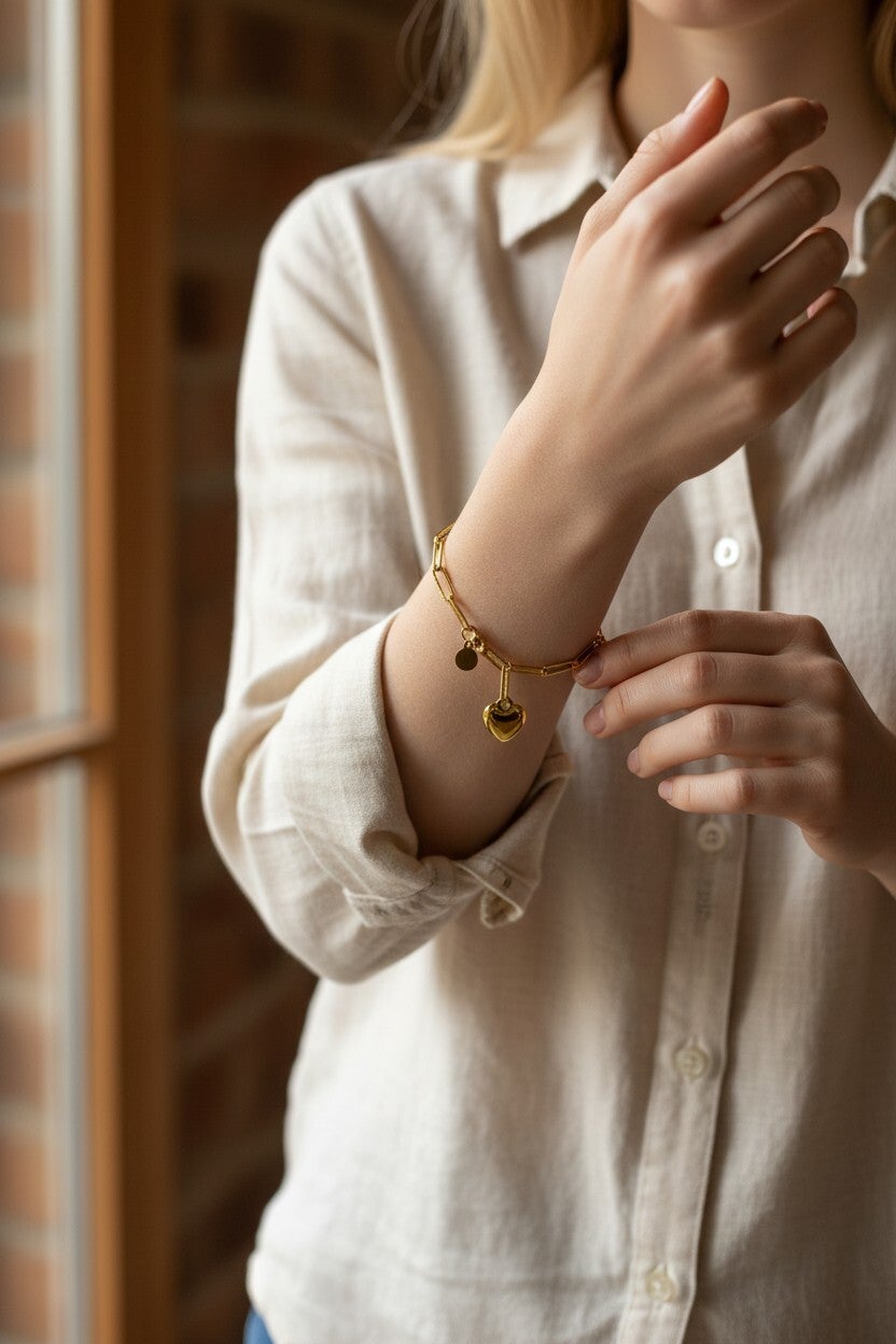Dit armband met fijne schakels maakt het een fijn armbandje zonder een te grove look uit te stralen. Het bedeltje maakt het armbandje helemaal af.