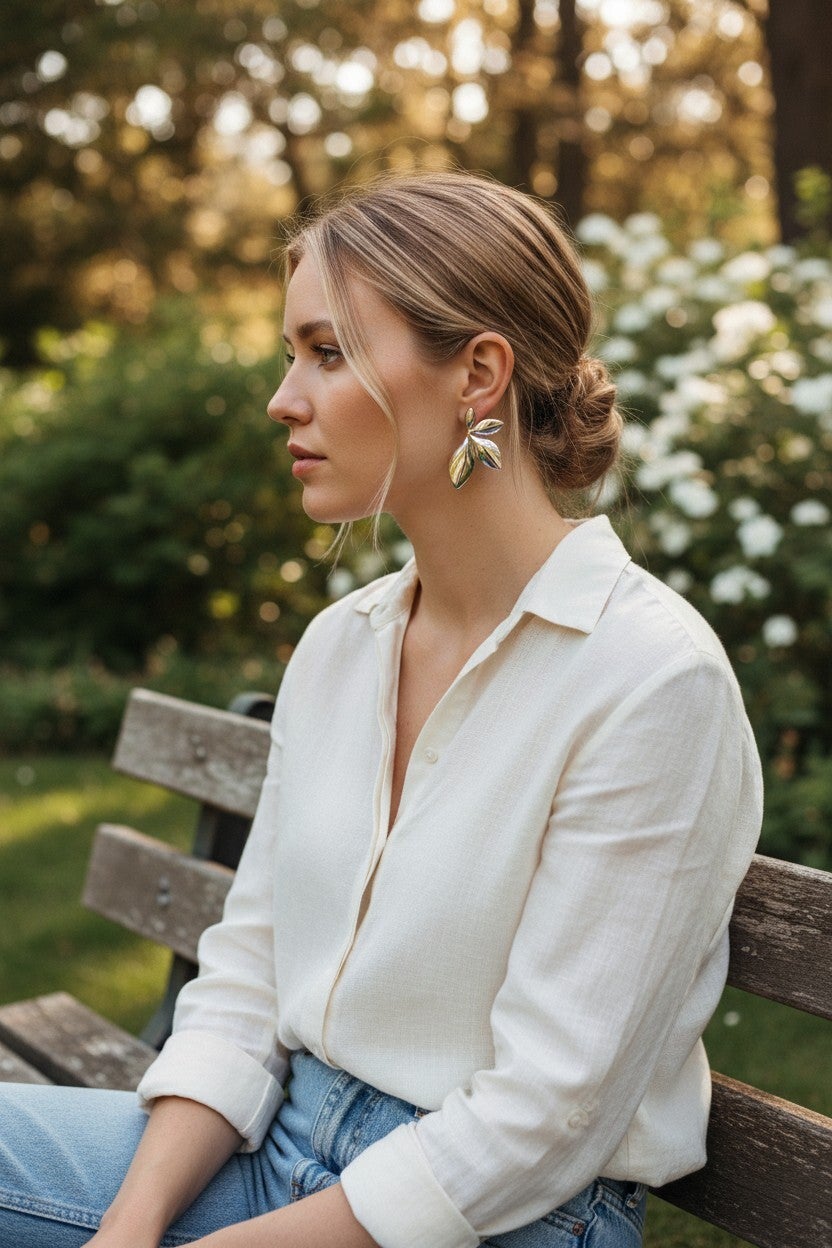 Deze elegante blad‑oorbellen hebben een verfijnd, modern design dat elke look een stijlvolle touch geeft. De vier glanzende blaadjes vormen samen een sierlijke, bloemachtige vorm die subtiel opvalt zonder te overheersen. Dankzij de zilverkleurige afwerking krijgen de oorbellen een frisse, tijdloze uitstraling die moeiteloos past bij zowel casual outfits als chique gelegenheden.