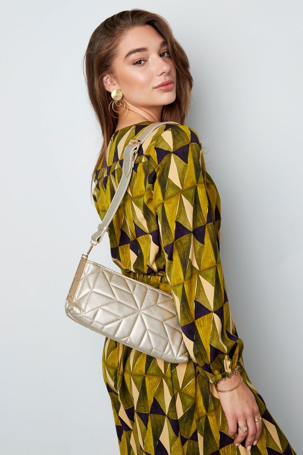 Hoe geweldig is deze clutch? Al jouw essentials passen hier in. Doordat de clutch metallic is, voegt het een extra touch toe aan jouw outfit. De clutch heeft de afmetingen 4 x 14 x 30 centimeter.